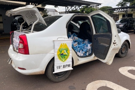 PM de Toledo prende homem com carro carregado de cigarros na BR-163