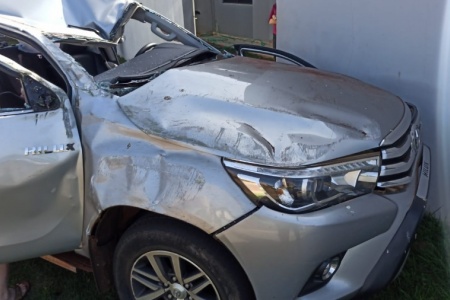 Caminhonete fica destruída em batida seguida de capotamento, em Toledo