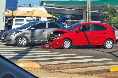 Carros colidem em cruzamento controlado por semáforo, no Centro de Toledo