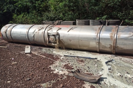 Carreta tanque tomba na PR-317 entre Toledo e Ouro Verde