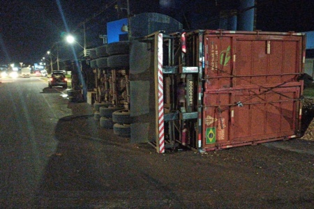 Carreta tomba em rotatória de Toledo