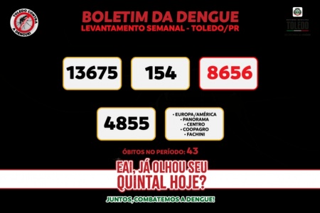 Saúde divulga boletim com quadro epidemiológico da dengue em Toledo