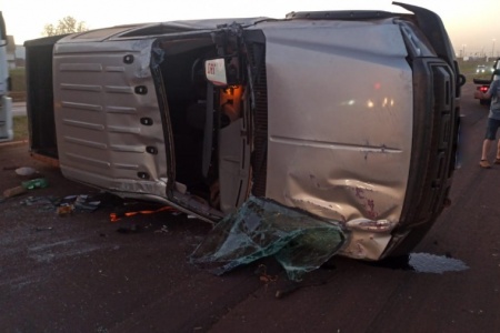 Caminhonete capota na BR-163 em Toledo e deixa trânsito lento