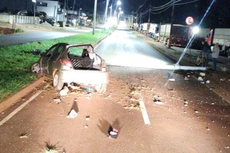 Após batida, carro atinge poste e deixa um ferido, em Toledo