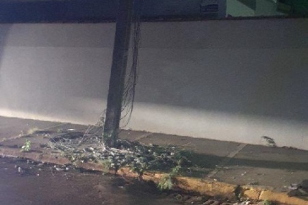 Carro fica destruído ao colidir com poste na Av. Egídio Munaretto