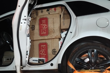 Após perseguição em alta velocidade, PM de Toledo apreende carro com 35 caixas de cigarros contrabandeados na PR-239