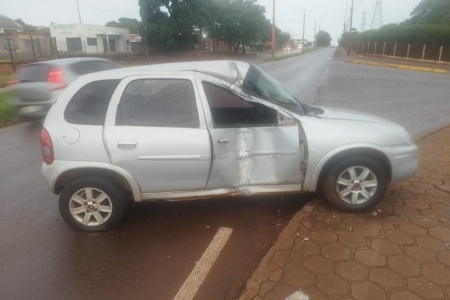 Carro colide em poste e duas pessoas ficam feridas, em Toledo