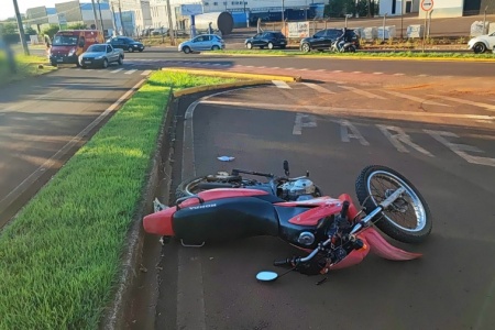 Motociclista fica ferido em forte colisão na Rua Carlos Barbosa
