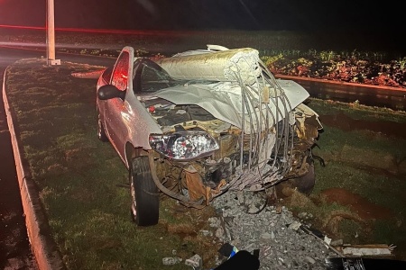 Poste cai sobre veículo após colisão entre Toledo e Assis Chateaubriand