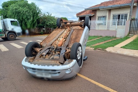 Carro capota ao colidir com caminhão de lixo, em Toledo
