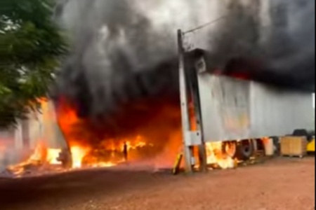 Incêndio destrói barracão, trator e implementos agrícolas em Toledo