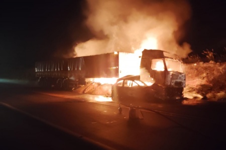 Idoso morre carbonizado em gravíssimo acidente na BR-163 em Marechal Rondon