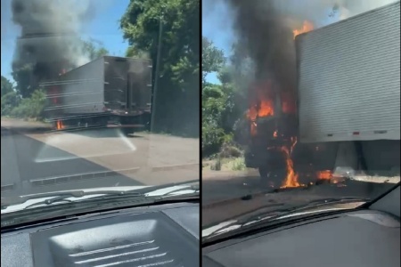 Caminhão é destruído em incêndio na BR-467
