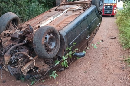 Carro capota em estrada de terra de Toledo