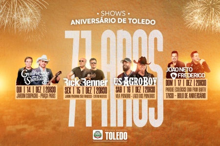 Confira a programação e shows da semana dos 71 anos de Toledo