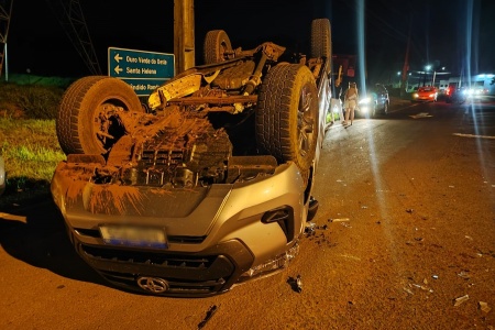 Luz alta de caminhão provoca acidente de moto, na BR-163 em Toledo