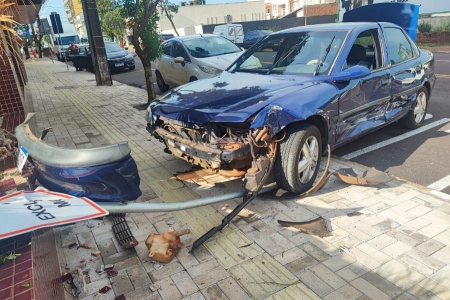 Vectra para sobre a calçada após batida em Toledo