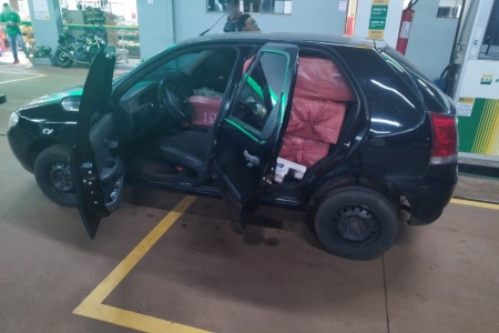PM apreende carro carregado com cigarros na BR-163 em Toledo