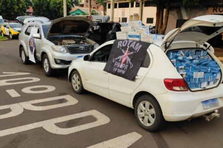 Com apoio de helicóptero, PM apreende dois veículos com cigarros em Toledo
