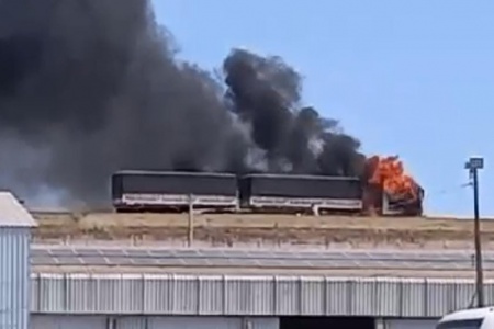 Carreta pega fogo em cima de viaduto em Toledo