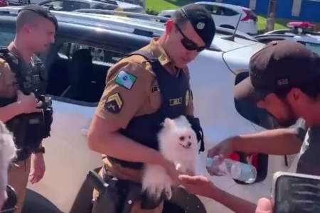 Policiais quebram vidro de carro e resgatam cão preso no porta-malas, em Toledo
