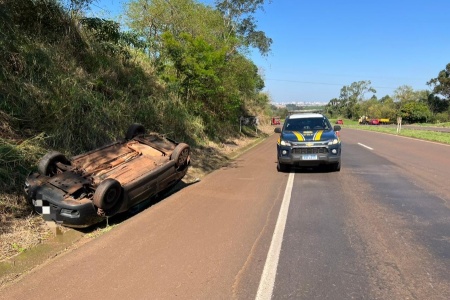 Carro com homem e criança capota após colisão entre Toledo e Cascavel