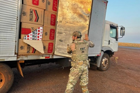 PM e PRF apreendem caminhão com cigarros após fuga em Toledo
