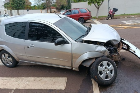 Carro sobe na calçada após batida e causa danos no centro de Toledo