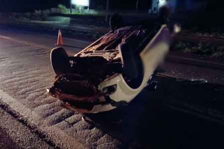 Motorista capota carro na BR-163 entre Toledo e Marechal Cândido Rondon e escapa com ferimentos leves
