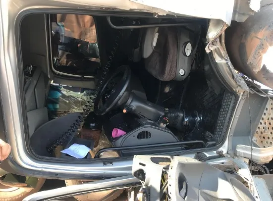 A ocorrência foi caracterizada como uma colisão traseira e resultou em danos materiais de grande monta, especialmente em um dos veículos, cuja cabine ficou praticamente destruída e suspensa após a batida.