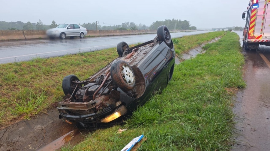 Um capotamento foi registrado na tarde desta sexta-feira (12) no trecho urbano da BR-163, em Toledo, deixando uma motorista com ferimentos leves. O sinistro aconteceu sobre o viaduto da Rua Barão do Rio Branco e envolveu um Chevrolet Celta.