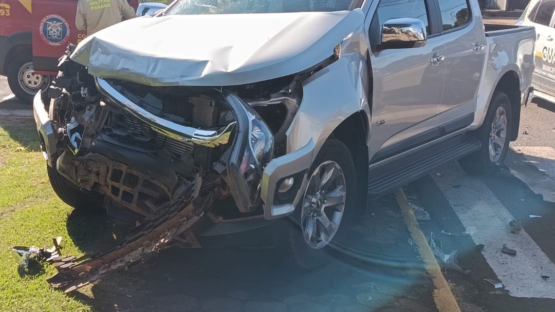 Uma colisão entre duas caminhonetes mobilizou equipes de atendimento na manhã desta sexta-feira (24), no Jardim Porto Alegre, em Toledo, após um dos veículos parar sobre o passeio público. O acidente ocorreu por volta das 08h20, no cruzamento das ruas Rio Grande do Sul e Cerro Largo, envolvendo duas Chevrolet S10.
