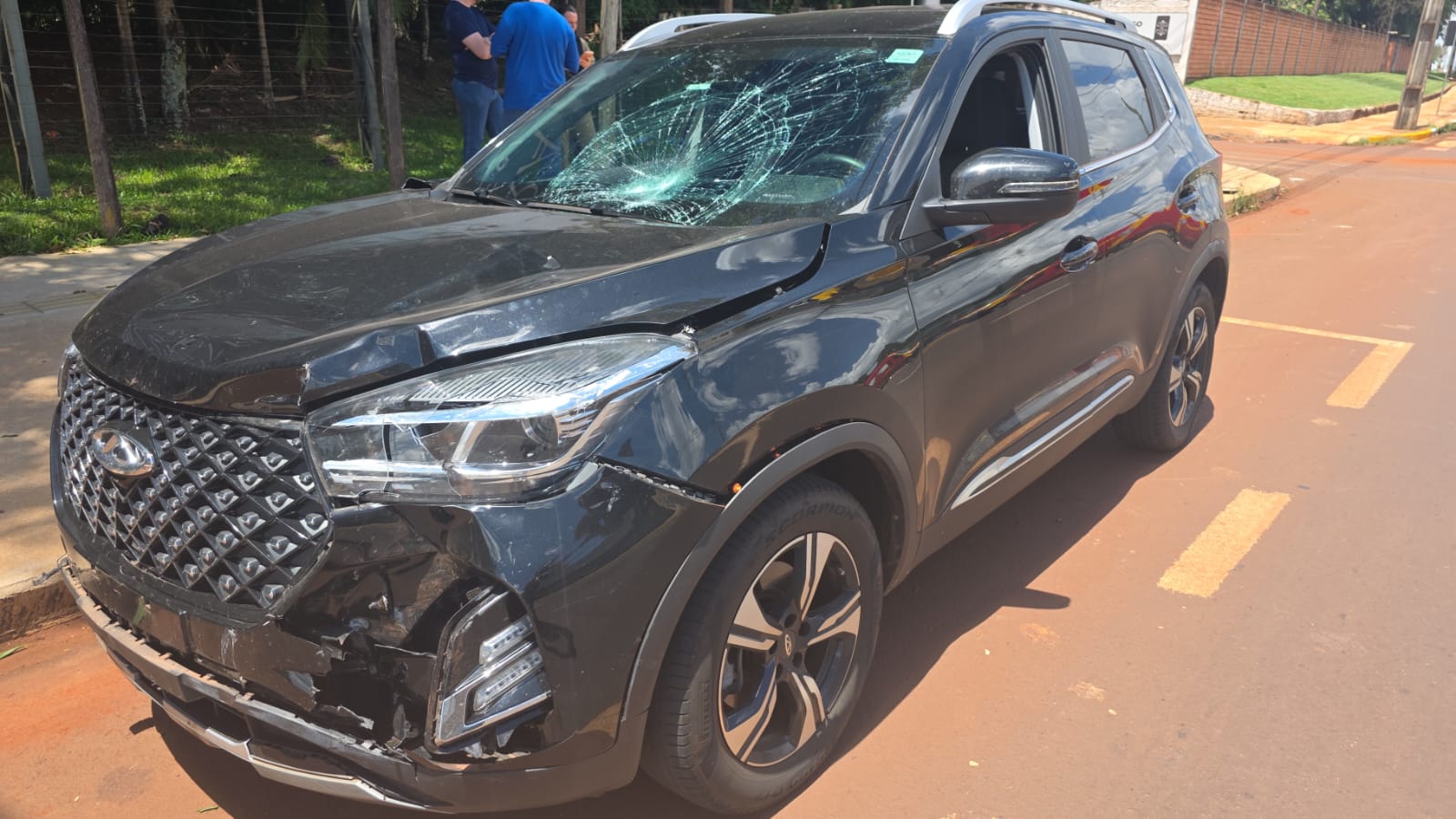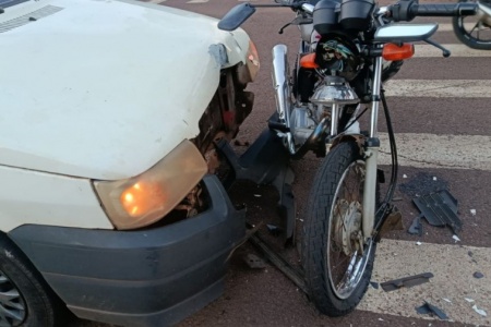 A primeira batida aconteceu quando um Caoa Chery, que seguia em direção à BR-163, atingiu uma Honda CG Start vermelha. A motocicleta atravessava a avenida ao sair da Rua João Orestes Ruaro. O piloto da moto foi atendido após o impacto.