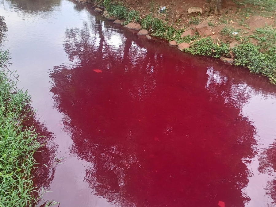 A água apresenta uma coloração avermelhada intensa, gerando preocupação e curiosidade entre a população local. Rapidamente, imagens do fenômeno começaram a circular nas redes sociais, amplificando as dúvidas sobre a origem da coloração anormal.