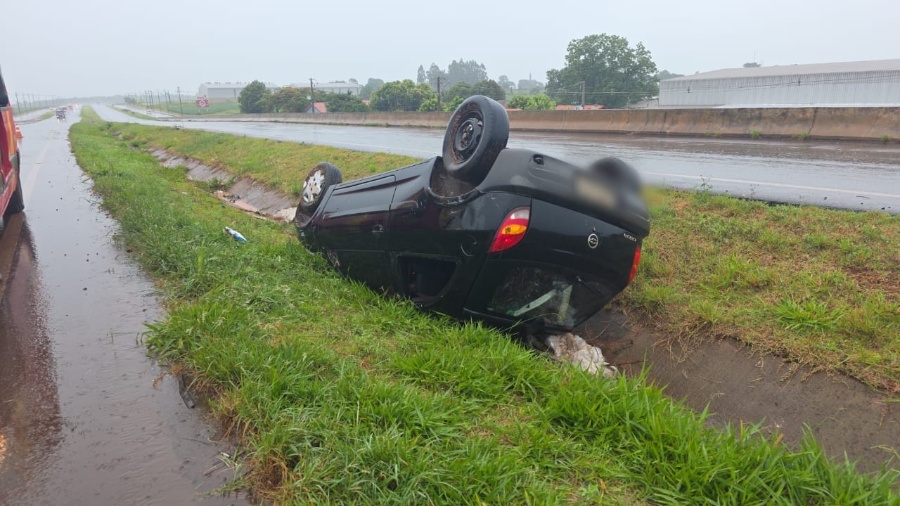 Um capotamento foi registrado na tarde desta sexta-feira (12) no trecho urbano da BR-163, em Toledo, deixando uma motorista com ferimentos leves. O sinistro aconteceu sobre o viaduto da Rua Barão do Rio Branco e envolveu um Chevrolet Celta.