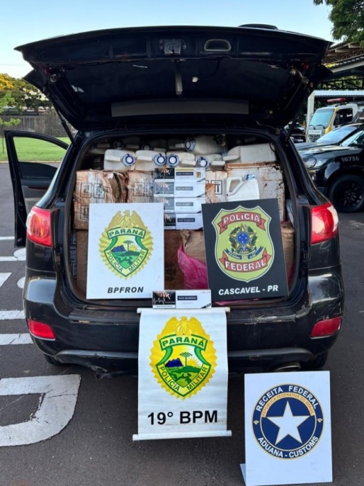O automóvel e a mercadoria foram levados à Receita Federal de Cascavel. As autoridades continuam as investigações para identificar o responsável.