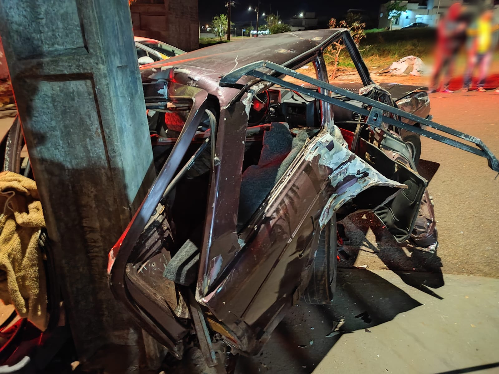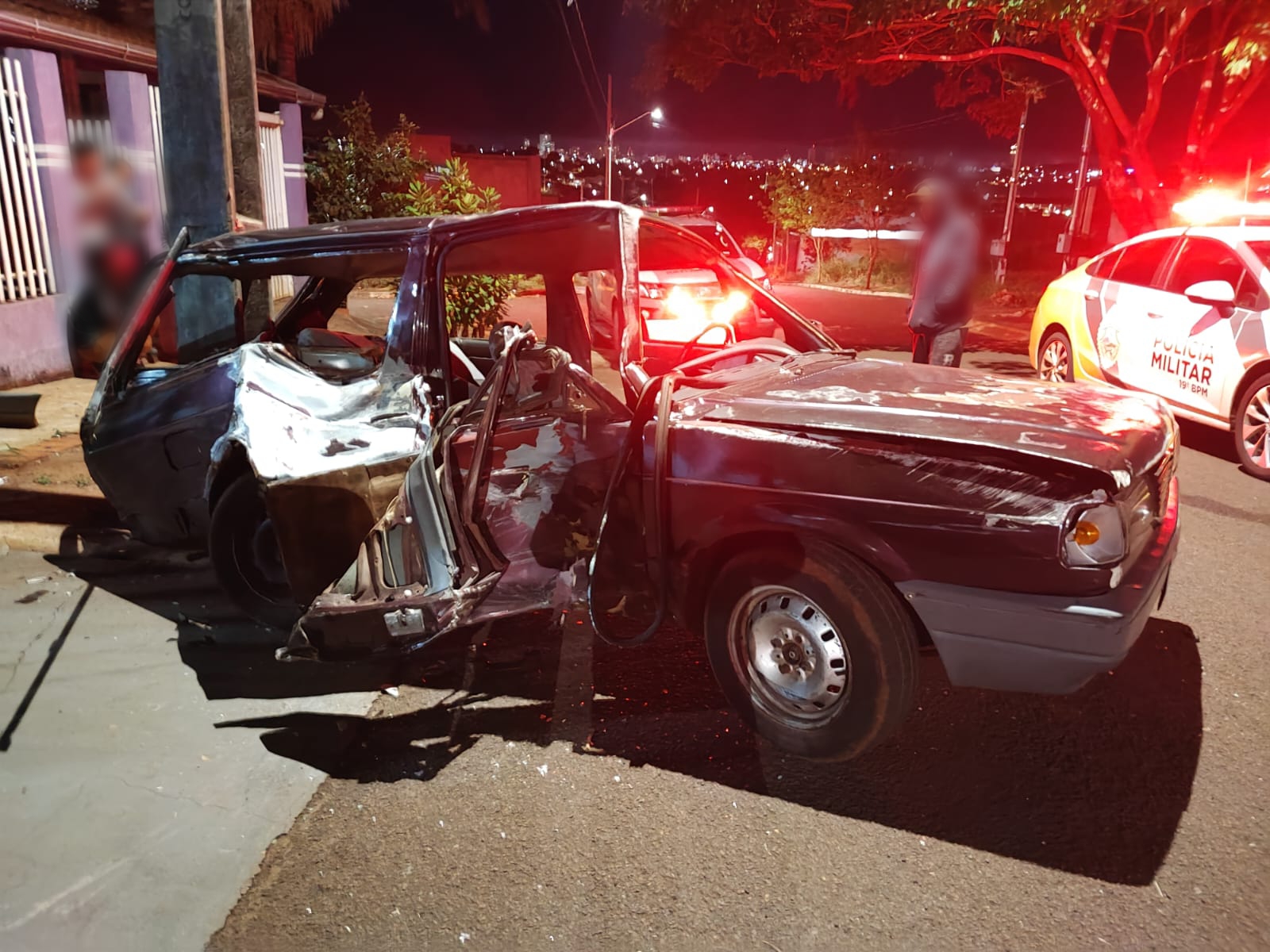 A batida foi tão forte que a Parati capotou e só parou ao colidir com um poste, a 50 metros do local da colisão. O motorista se evadiu.