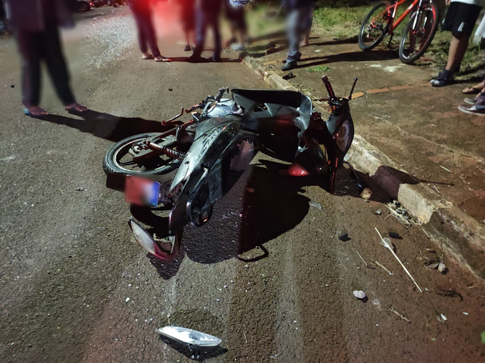 Uma colisão entre uma moto e um carro deixou dois jovens feridos na noite desta quinta-feira (14), no bairro Santa Clara IV, em Toledo. O motorista do carro não foi localizado.