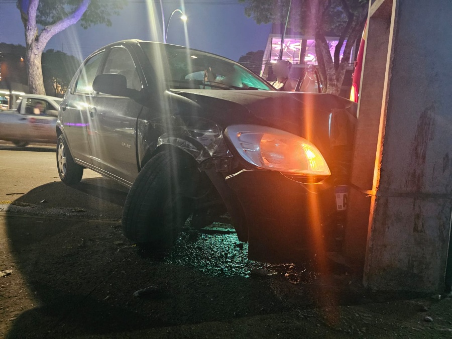 Com o mal súbito da condutora, o veículo ficou descontrolado e colidiu com um VW/Passat estacionado e, em seguida, com um poste.
