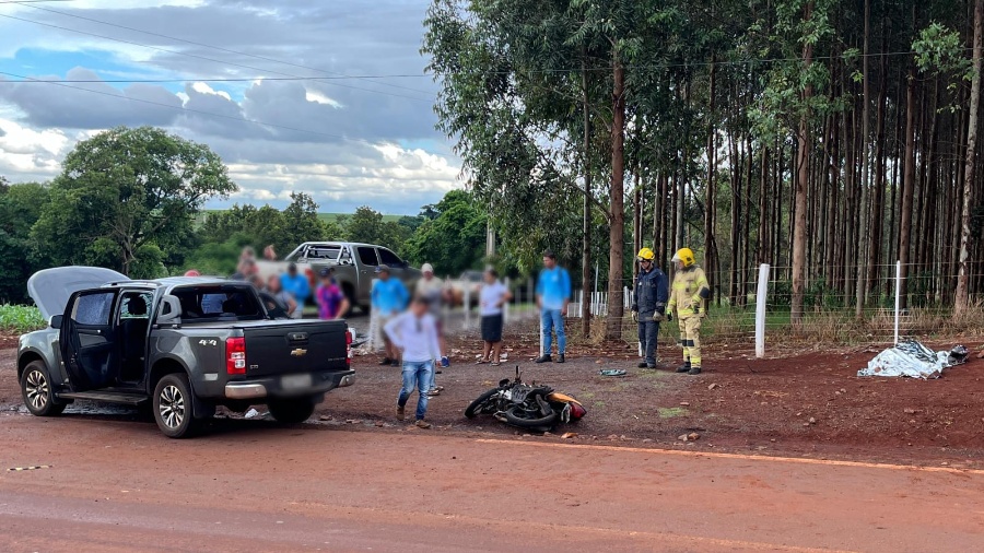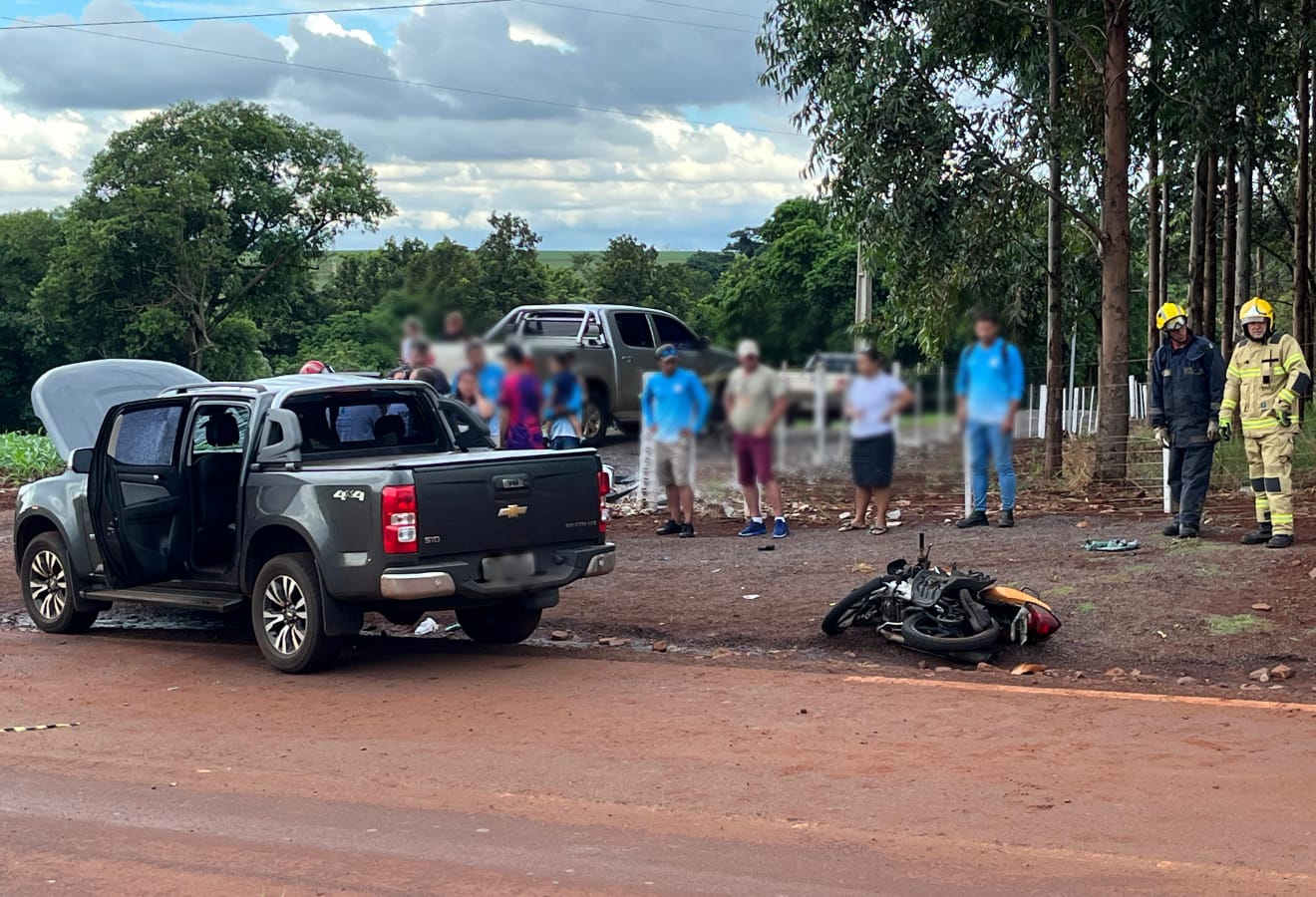 Conforme as informações, o acidente aconteceu na saída de Toledo para o distrito de Xaxim, proximidades da Clínica Veterinária da PUC. A colisão envolveu uma moto Honda CG e uma caminhonete GM/S10, ambos com placas de Toledo.